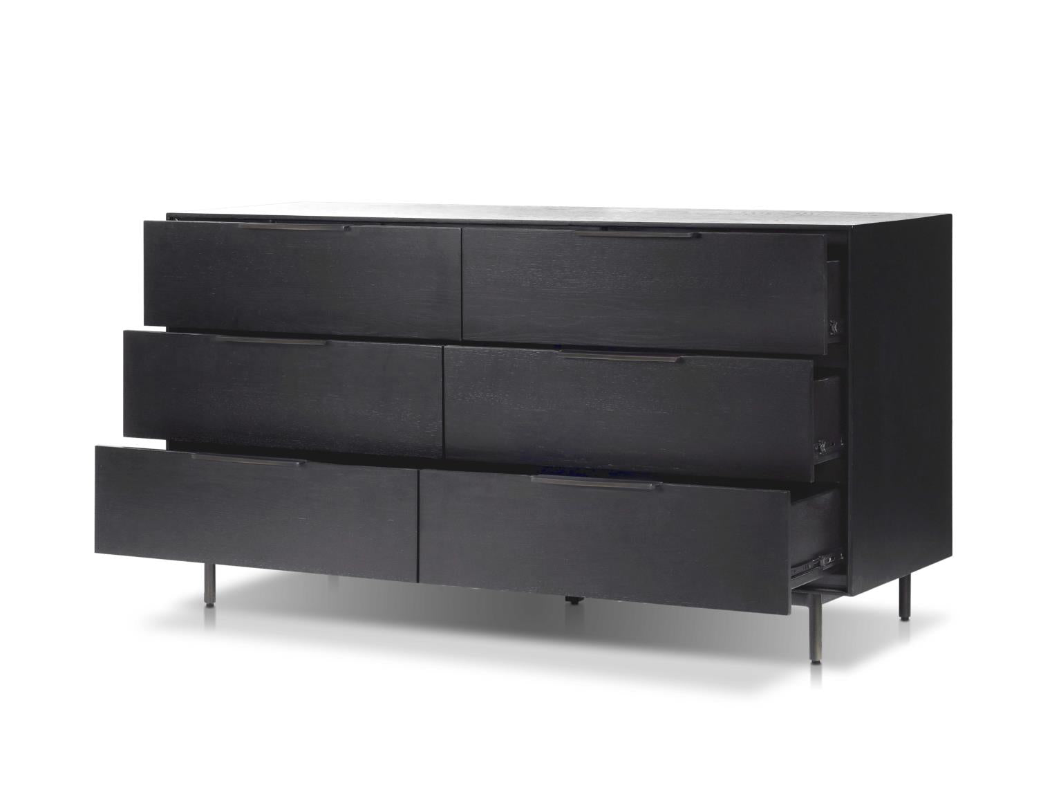 Introducing the Akira Mid Century Modern Six Drawer Dresser in Black. Minimalist design perfection. Storage and sleek design blend perfectly.