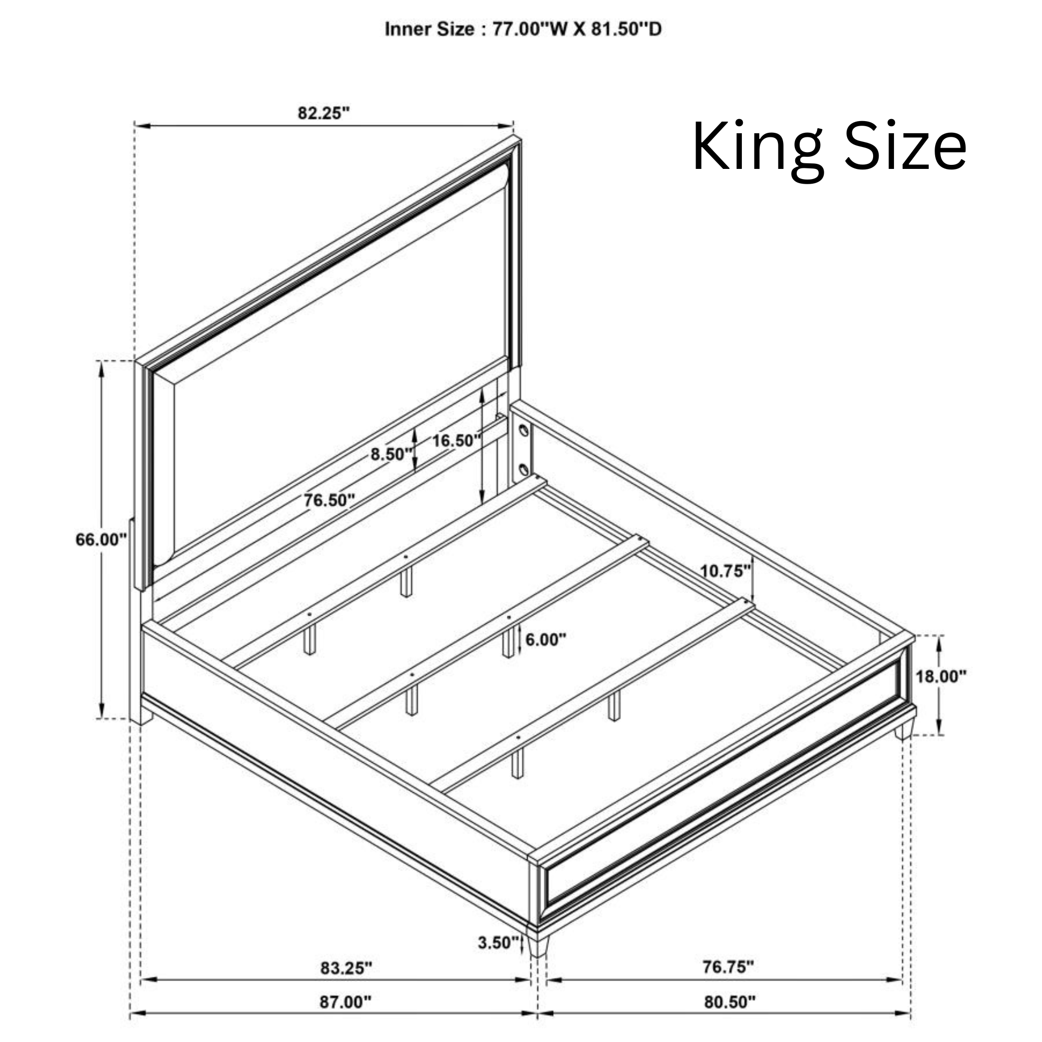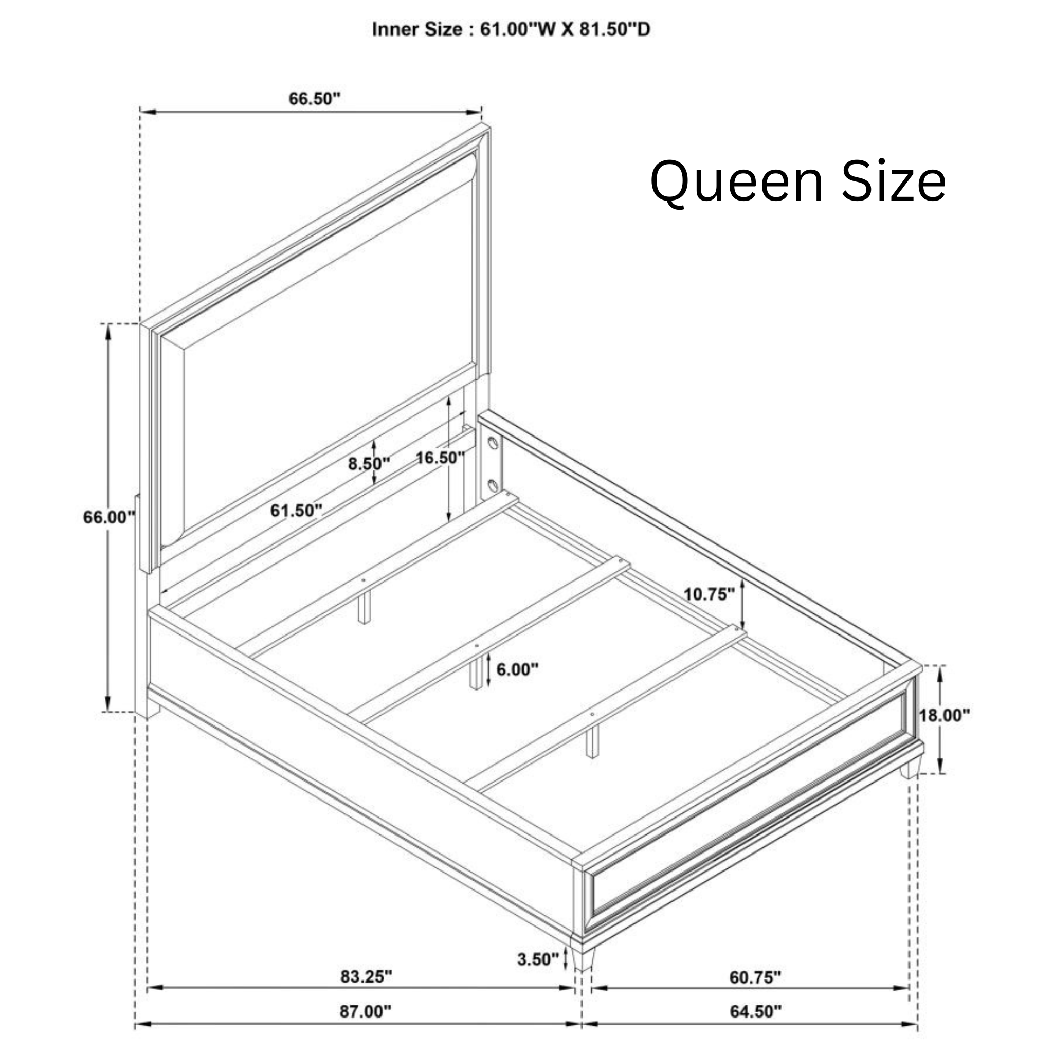- Tall headboard design adds graceful height and timeless visual impact