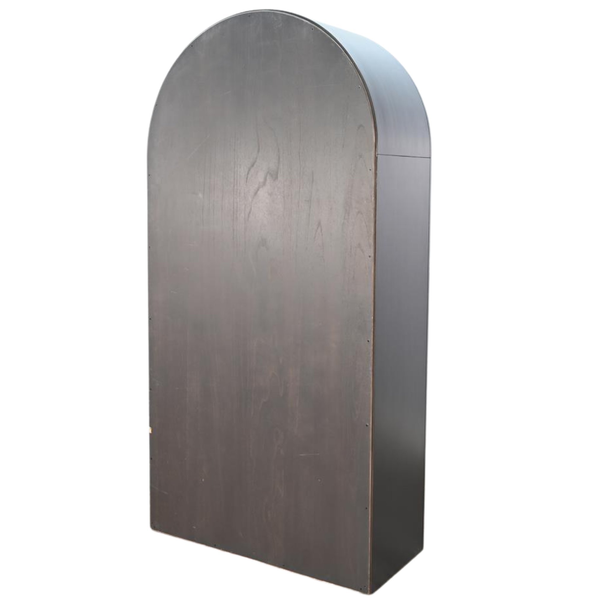 A stunning addition to any room. The Logan arched bookcase in black with natural interior is a striking cabinet with ample storage.