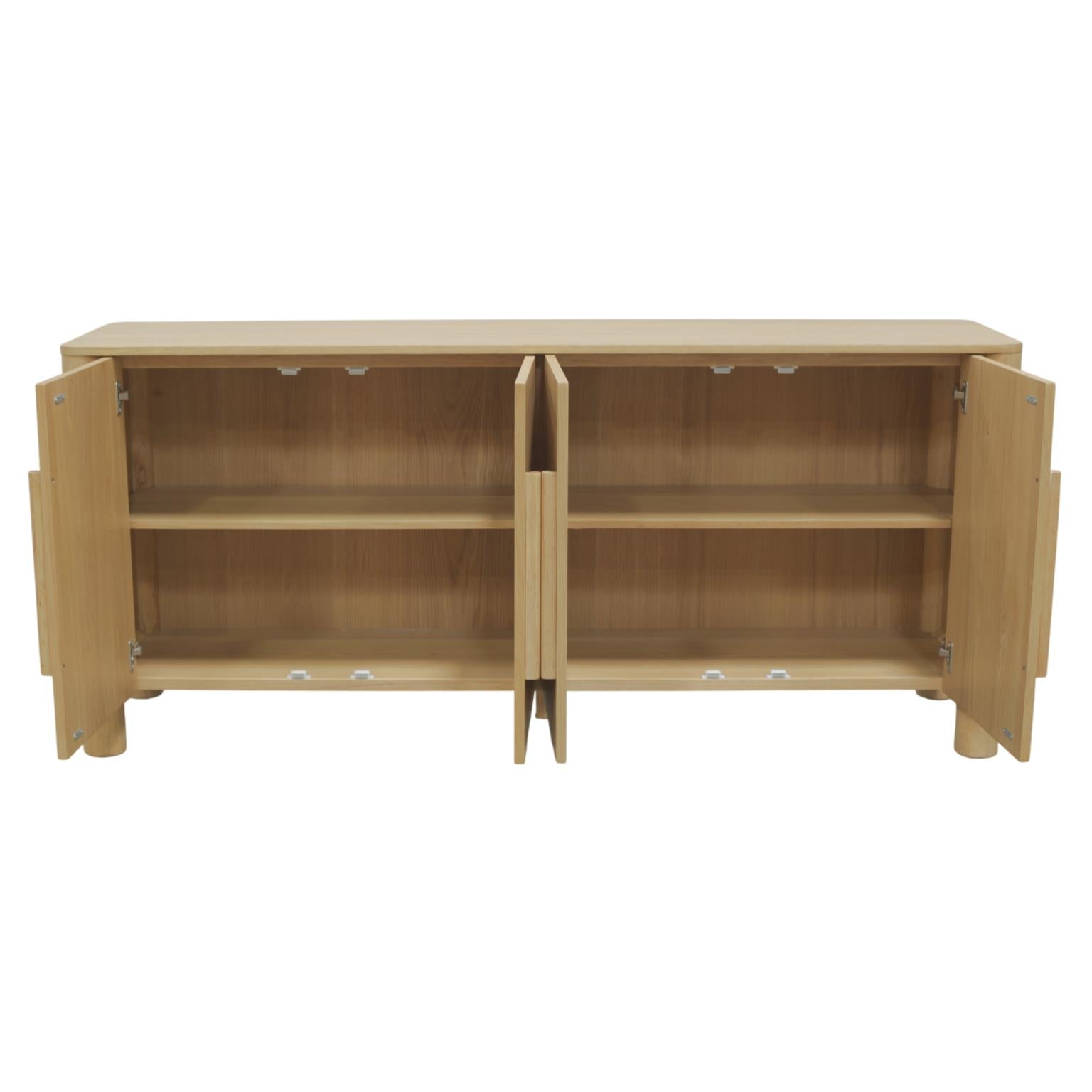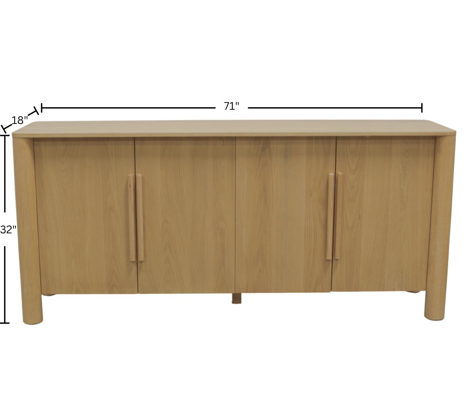 The Hudson Sideboard is the perfect fusion of form and function, designed to bring warmth and versatility to your home. Finished in a soft light oak, its minimalist profile, rounded edges, and clean-lined wood handles give it a contemporary yet timeless appeal. Measuring 71 inches wide, this spacious sideboard offers ample storage while maintaining a sleek, uncluttered look.