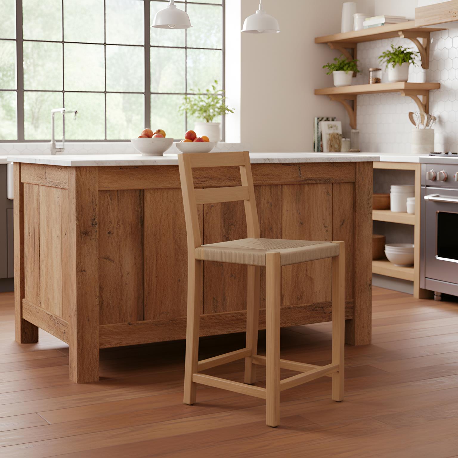 Bring natural warmth and modern simplicity to your dining space with the Sierra Loom Counter Height Chair. Crafted with a clean, minimalist wooden frame and a beautifully handwoven loom-rope seat, this chair blends Scandinavian inspiration with relaxed coastal character. The 24-inch seat height pairs effortlessly with most counter-height tables and islands, while the woven texture adds depth, comfort, and inviting charm. Arriving fully assembled and styled in a versatile natural finish, the Sierra Loom Chair offers effortless elegance for everyday dining and casual gathering spaces.