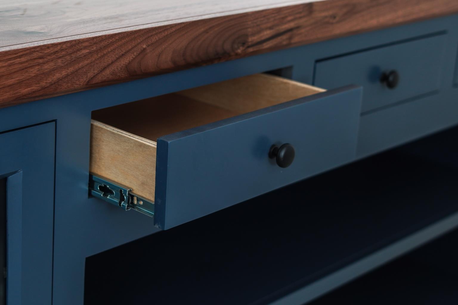 Harbor Bay 94" TV Console - Midnight Blue w/Walnut Top