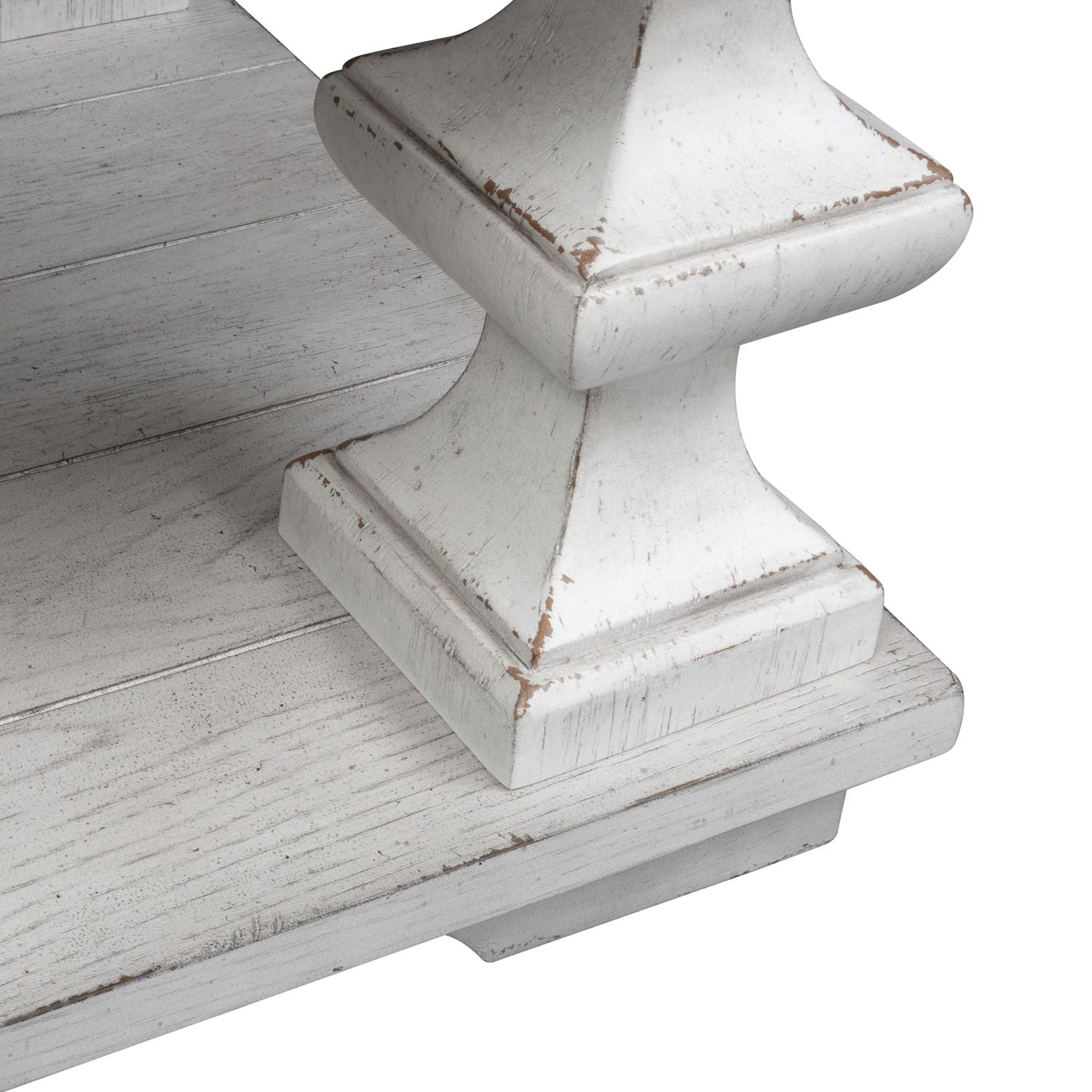 Elevate your space with the Spanish style Sedona cocktail table. Crafted of rubberwood solids and white oak veneers, this piece features a heavy distressed white finish and gravel top, appealing planked top with square peg accents, a planked bottom shelf for additional storage, casters for easy mobility, and is anchored by Spanish style square turned legs. Also available in an alternate finish, this gorgeous cocktail table will be a great addition to any traditional style space.