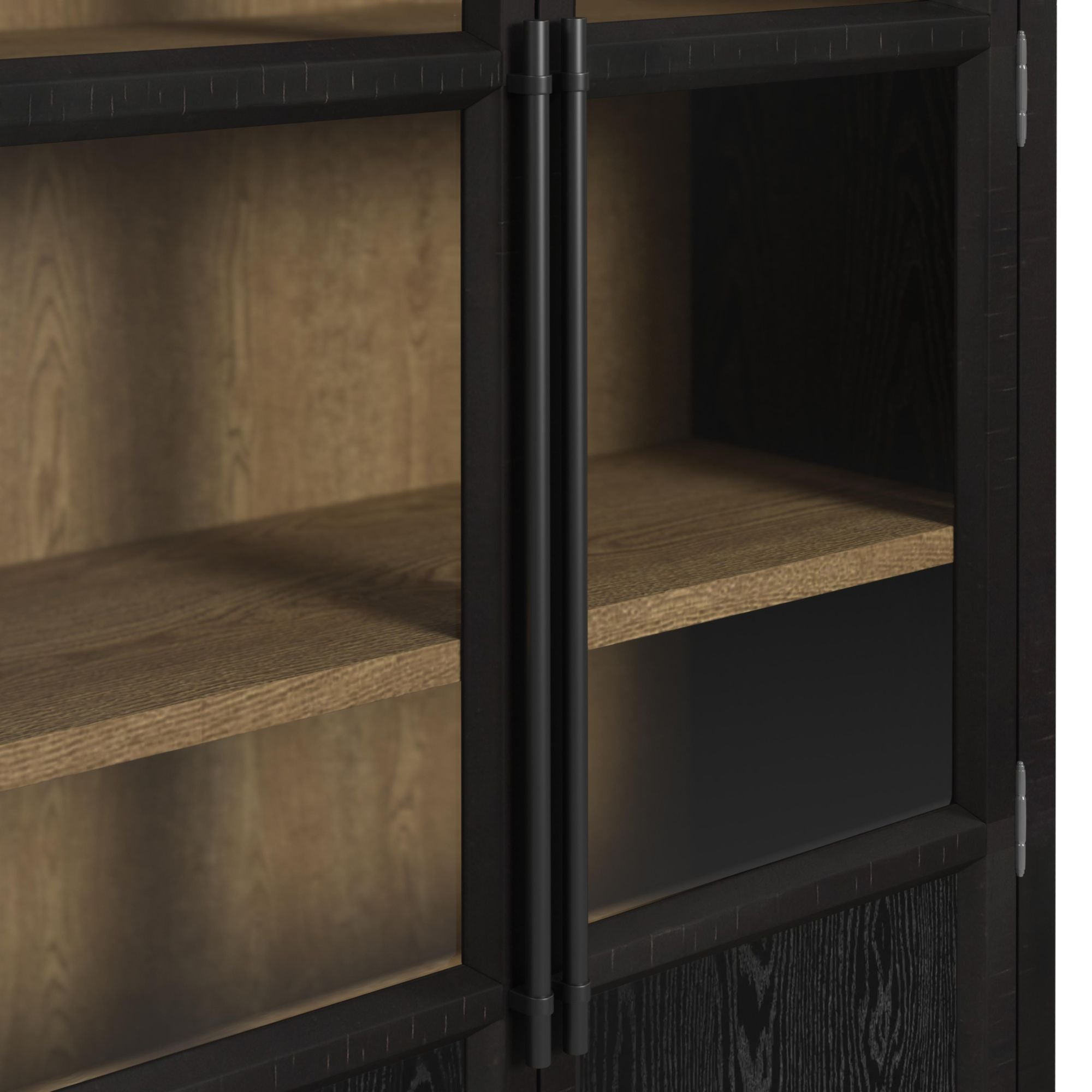 Offering a stylish and practical storage solution for your books and decorative trinkets, the Taurus Bookcase in Flat Black combines modern design with timeless functionality. This piece features two doors with durable tempered glass that protects your belongings while the high-quality oak veneer effortlessly enhances durability. The gently tapered feet provide reliable stability, while the bold, black finish and gracefully arched silhouette create a sophisticated essence. For an organized and elegant addition to your living space, the Taurus Bookcase in Flat Black delivers.